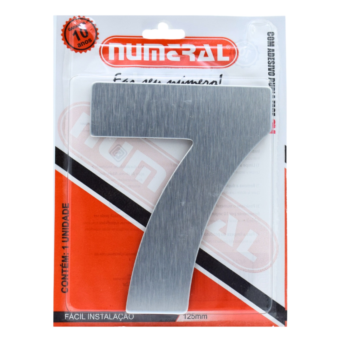 Como aplicar? 1- Limpe a superfície antes de fixar o produto. 2- Remova a dupla face do adesivo. 3- Posicione o numero no local e pressione firmemente por 10 segundos. 4- para a limpeza do produto não use abrasivo. Vantagens Fácil instalação: fixação adesiva, não requer furar parede. Alta durabilidade: resistente à ação da chuva. Não enferruja. Aplicação versátil: Pode ser fixado em diversas superfícies
