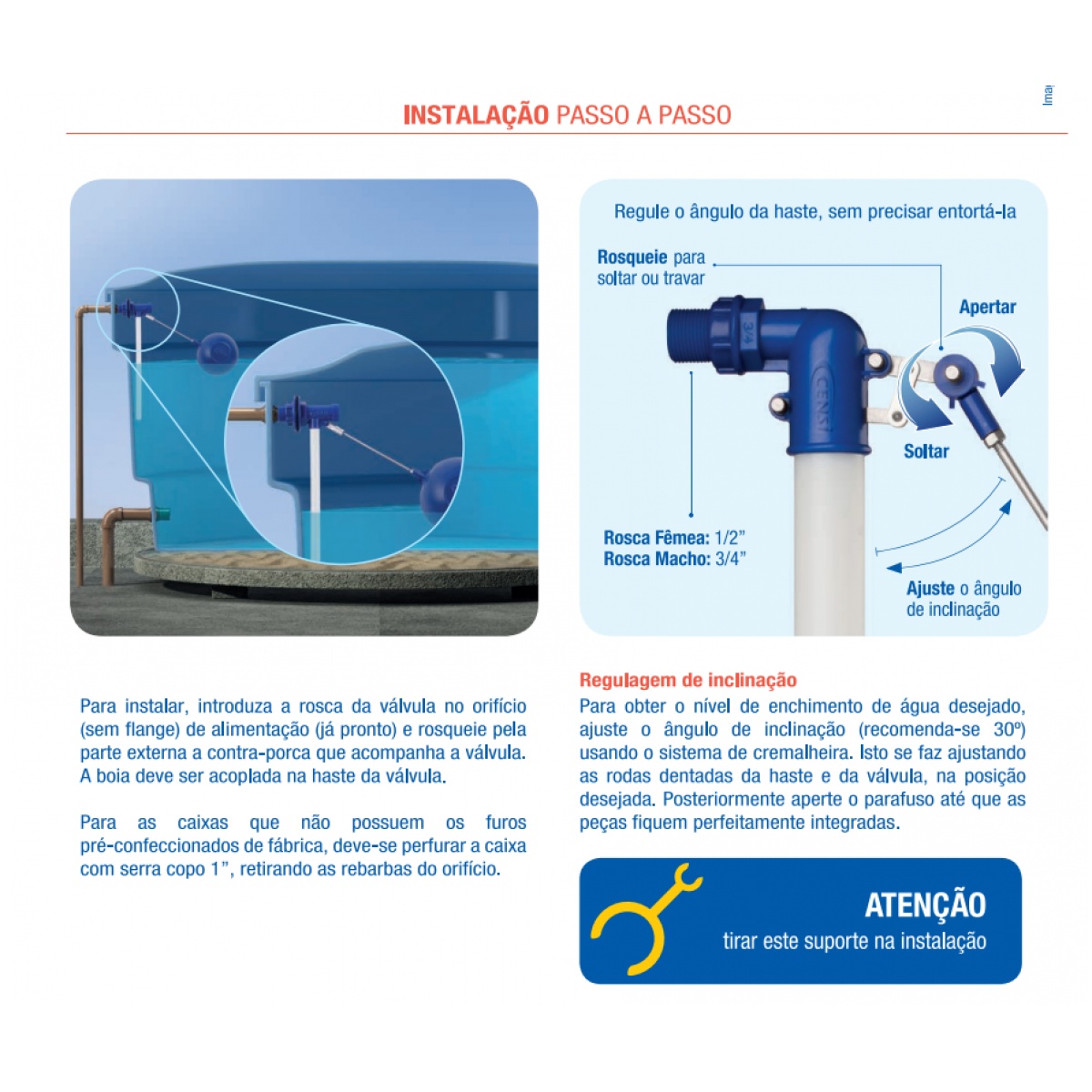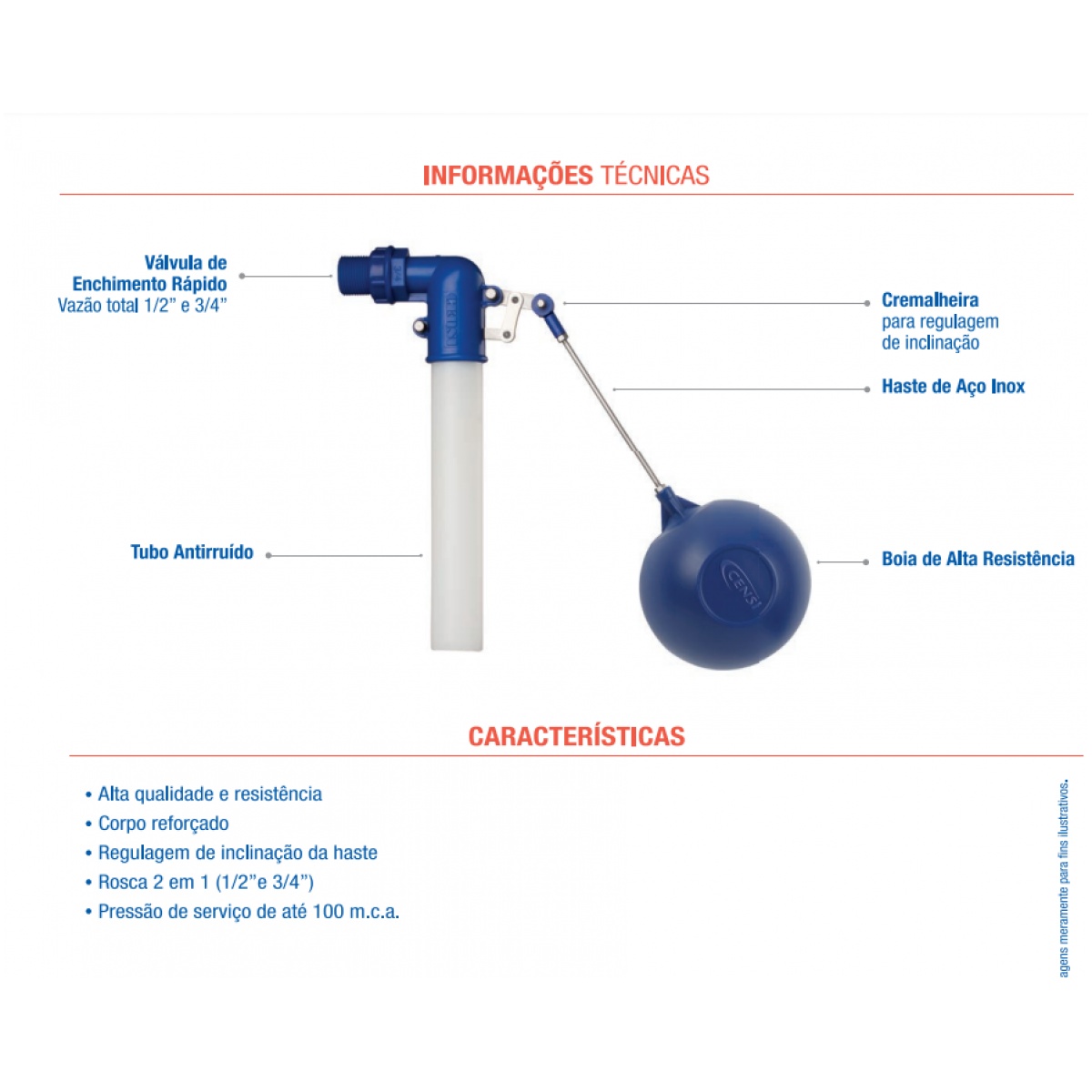| Regulagem | Ajuste da altura da boia. |