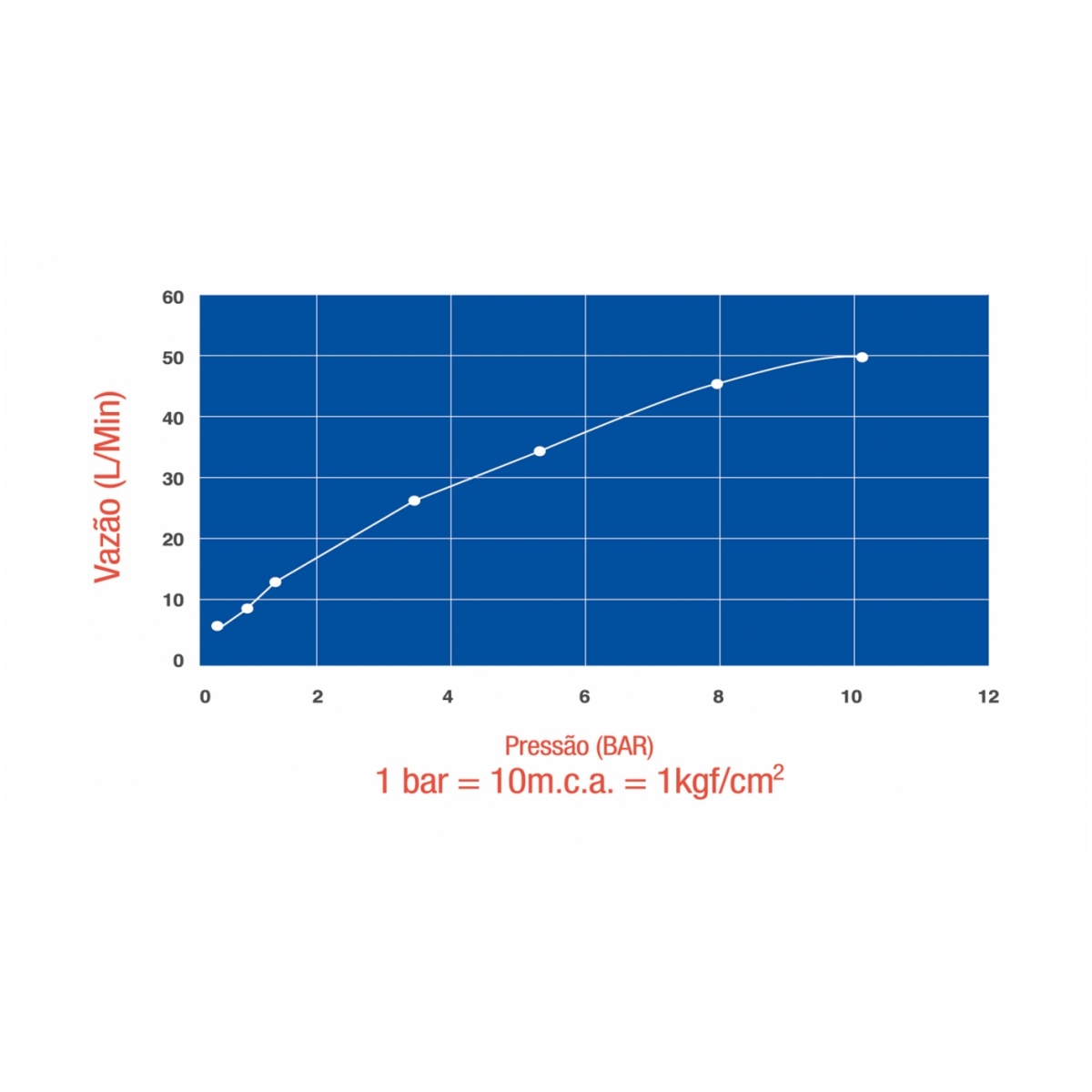 | Pressão máxima | 10 kgf/cm² (100 m.c.a). |
