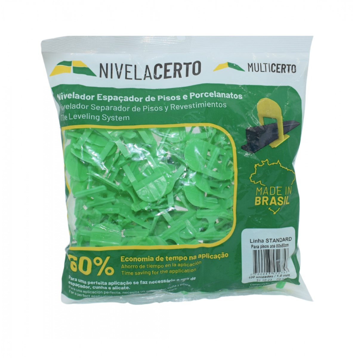 Instruções de uso: 1- Depois de aplicar a massa, retire o excesso e insira os espaçadores nos quatro cantos do piso. 2- Insira a cunha na base, para iniciar o nivelamento dos pisos. 3- Para facilitar esse processo, recomenda-se o uso de alicates NivelaCerto. Cuidado para não passar do ponto de ruptura. 4- Quando a massa estiver seca, a cunha deverá ser retirada com a utilização de um martelo de borracha, Sempre no sentido da fuga.