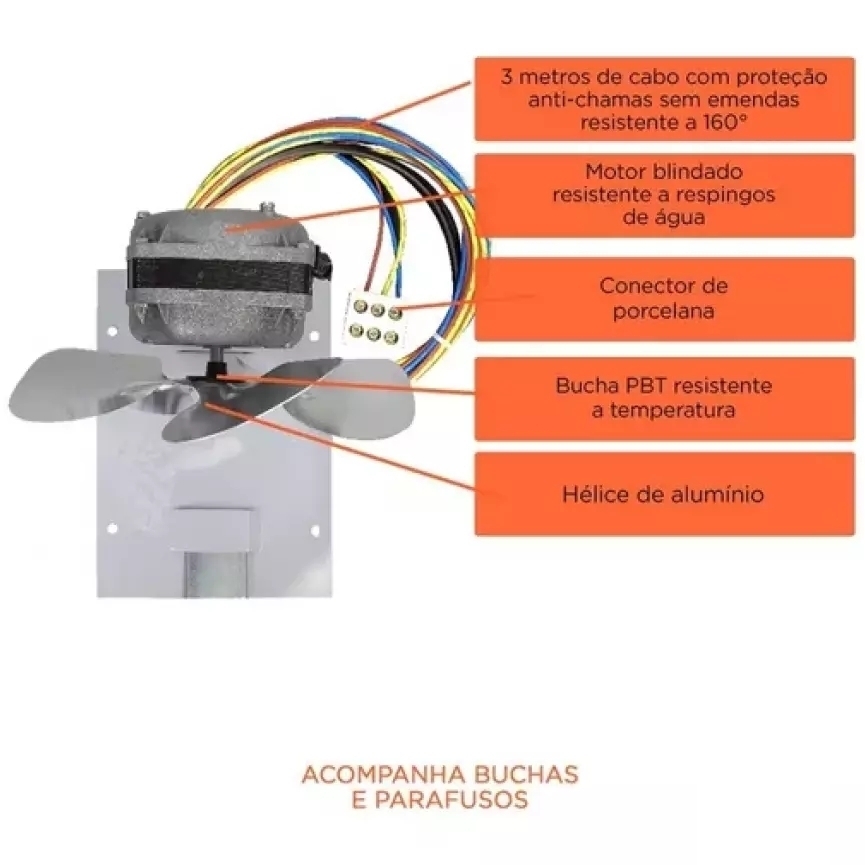 1 exaustor de churrasqueira 1 suporte para fixação 1 manual de instruções 1 soquete de porcelana para emenda de fios