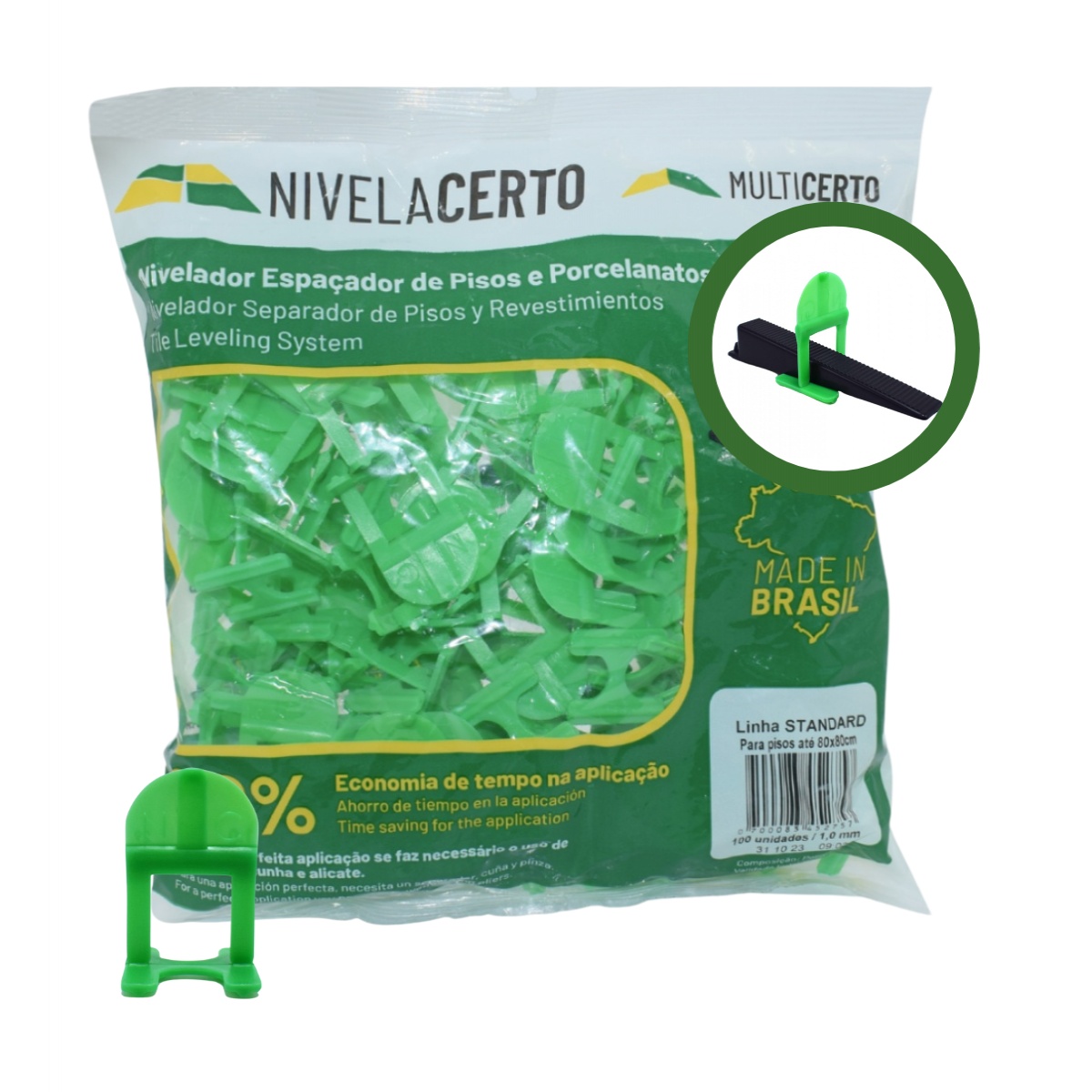 Nivela Piso Multicerto 1,0mm Verde Pacote com 100 peças